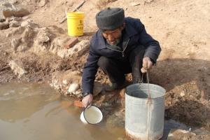 甘肃聂家窑村供水单位中断供水 人畜共用一坑咸水 |