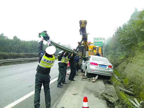 八米护栏戳穿轿车驾驶室 驾车孕妇毫发未伤(图) |