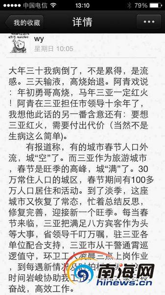 三亚市长春节发长微信吐心事:请八方来客多包涵 |