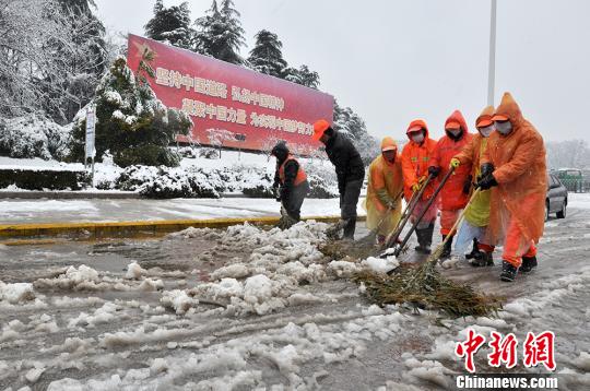 南京大雪“埋城” 万名环卫工凌晨出动全市扫雪 |