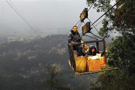 鄂西铁炉乡的生命索道:妇女曾踏空坠下深谷(图) |