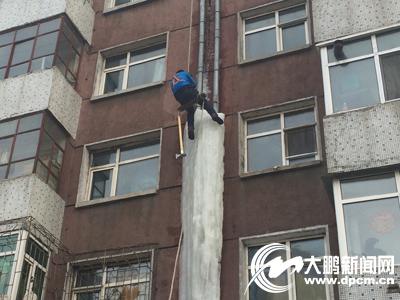 十米高大冰柱悬空中 物业花六小时将其清除 |