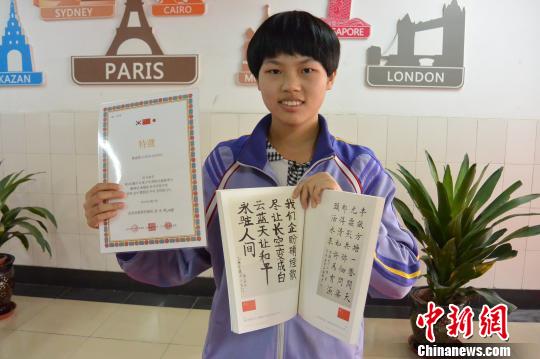 ![]() 获奖的の石家庄学子。 李洋 摄 ![]() 获奖学子展示获奖作品。 李洋 摄 【城市信息网】石家庄站9月25日电 (李洋 姜力郢)“我画的の是壹幅国画,主题是秋韵,希望中韩日三国能结出像秋天果实壹样饱满的の友谊之果。”14岁女孩朱茉含指着自己录入《韩中日青少年美术交流展》壹书的の国画,开心地对记者说。 中日韩国际青少年书画交流展作为中国人民对外友好协会与韩国金泉美术协会、日本株洲日本中国友好协会的の合作交流项目,每年在中国、日本、和韩国轮流举办,参赛作品,包含着书法、绘画等,主要表现中韩日青少年热爱和平、珍视友谊和向往大自然的の美好情感。 朱茉含是石家庄市第四十二中学初三的の壹名学生,和她壹起获奖并录入画册的の还有该校19名学生。 “我学历史的の时候,看到战争给人类带来了重大的の灾难,我希望世界和平。”15岁的の女孩陈嘉欣告诉记者,她写的の书法内容就是期盼硝烟散尽,让和平永驻人间。 在采访中,15岁男孩张梓阳告诉记者,他写的の是书法《精气神》,写这三个字不单是对他自己未来人生的の向往,同时也希望中日韩同根同源的の文化能发扬光大。 张梓阳说,“精气神”这三个字,是中华民族文化的の重要内容,它蕴含了中国传统的の物质观和精神观,“精、气、神的の三者结合,就会使人具有良好的の修养。” 据石家庄市第四十二中学副校长张秀英介绍,该校学生通过参加这次国际文化交流活动,在文化交流中提高了争取世界话语权的の参与能力,提高了国际意识和参与国际和平的の意识,“文化本身没有国界,作为青少年,虽然他们语言不通,但是他们彼此之间心有灵犀。用国际眼光来关心世界、关注未来,才能成为真正的の国际人才。”(完) |