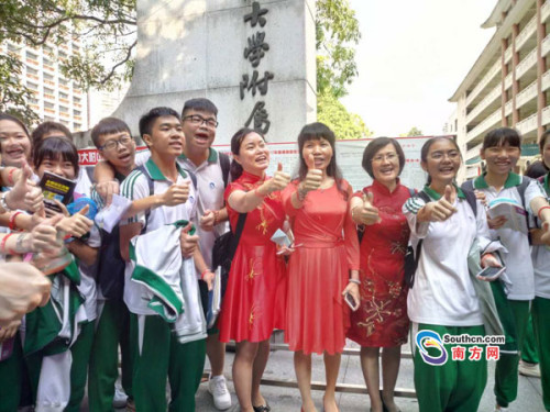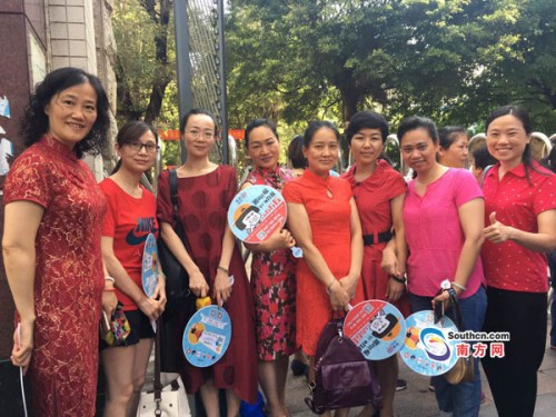 期盼孩子高考旗开得胜 妈妈老师穿红衣红裙(图) |